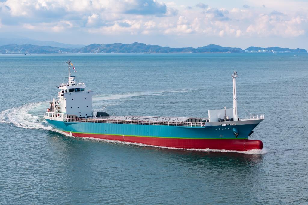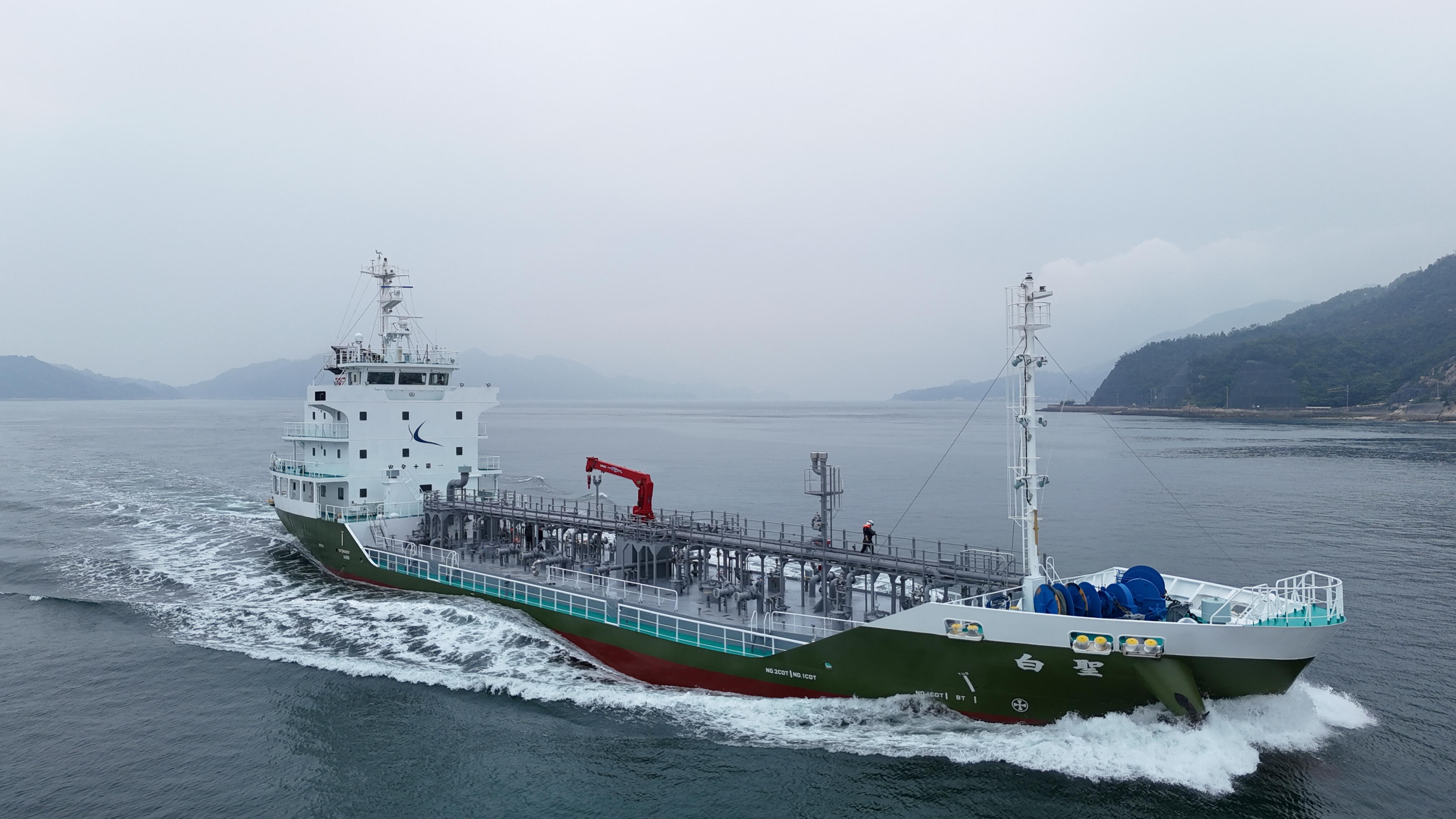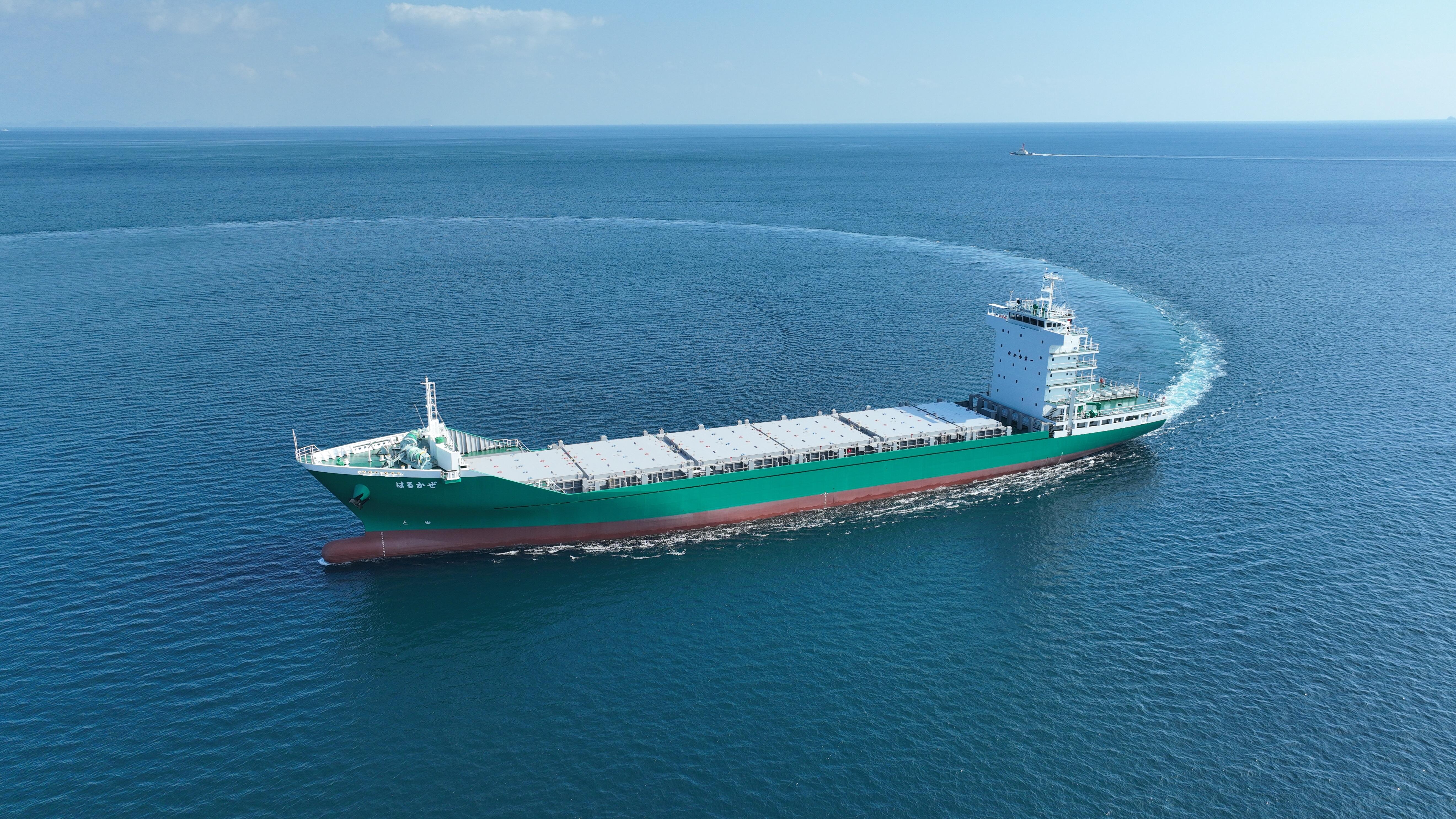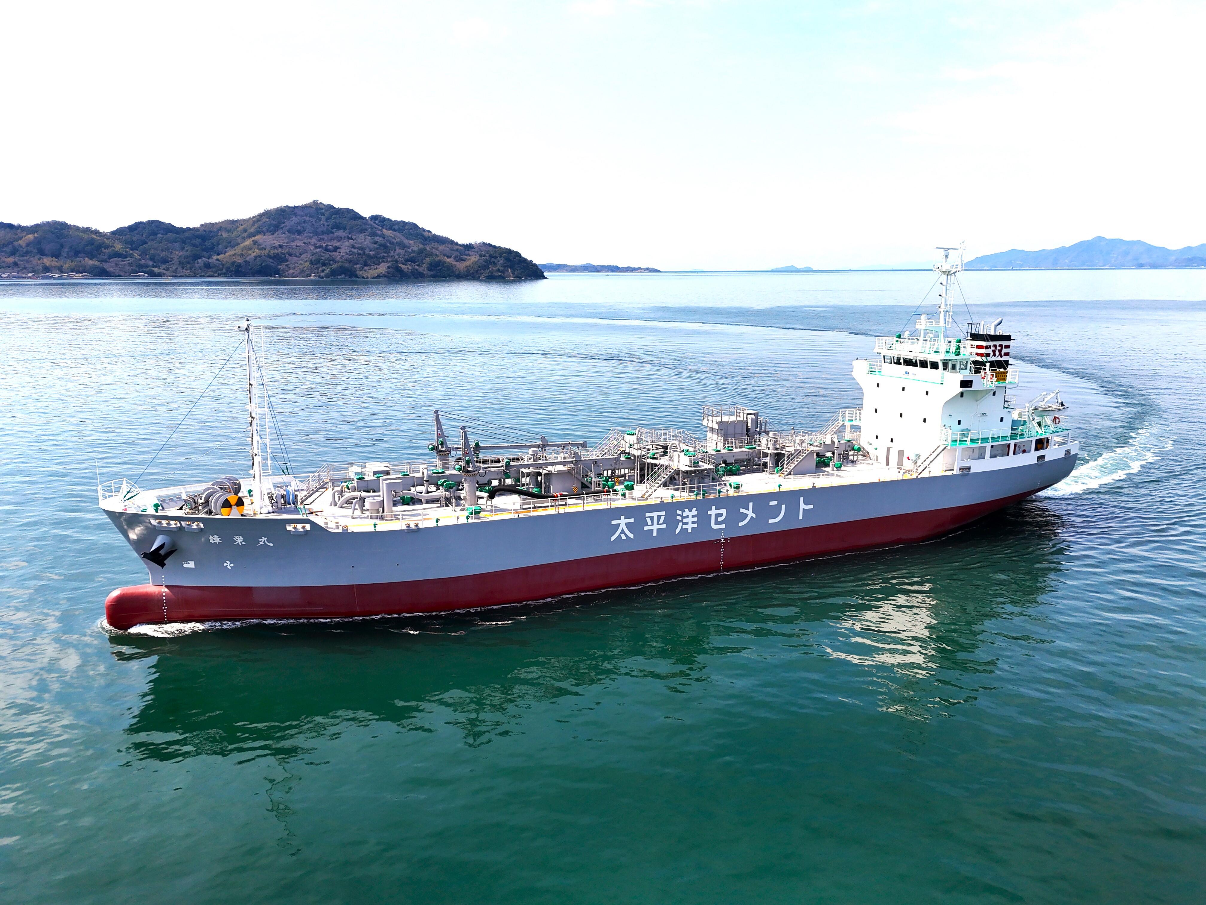 令和7年3月12日、愛媛県今治市の山中造船株式会社において竣工した株式会社邑本興産との共有貨物船