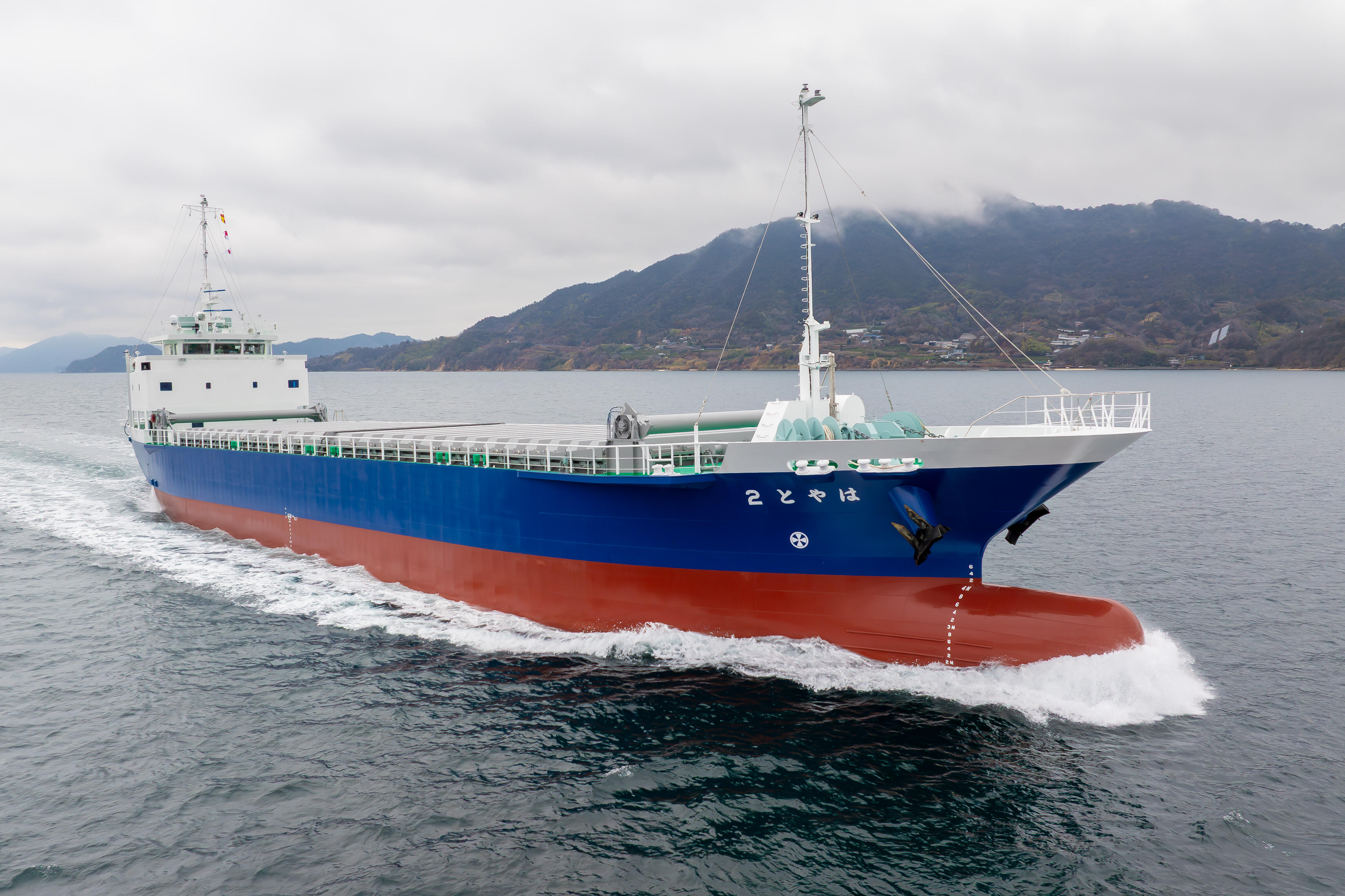 令和8年3月9日、愛媛県今治市の矢野造船株式会社において竣工した株式会社鹿児島商運組との共有貨物船