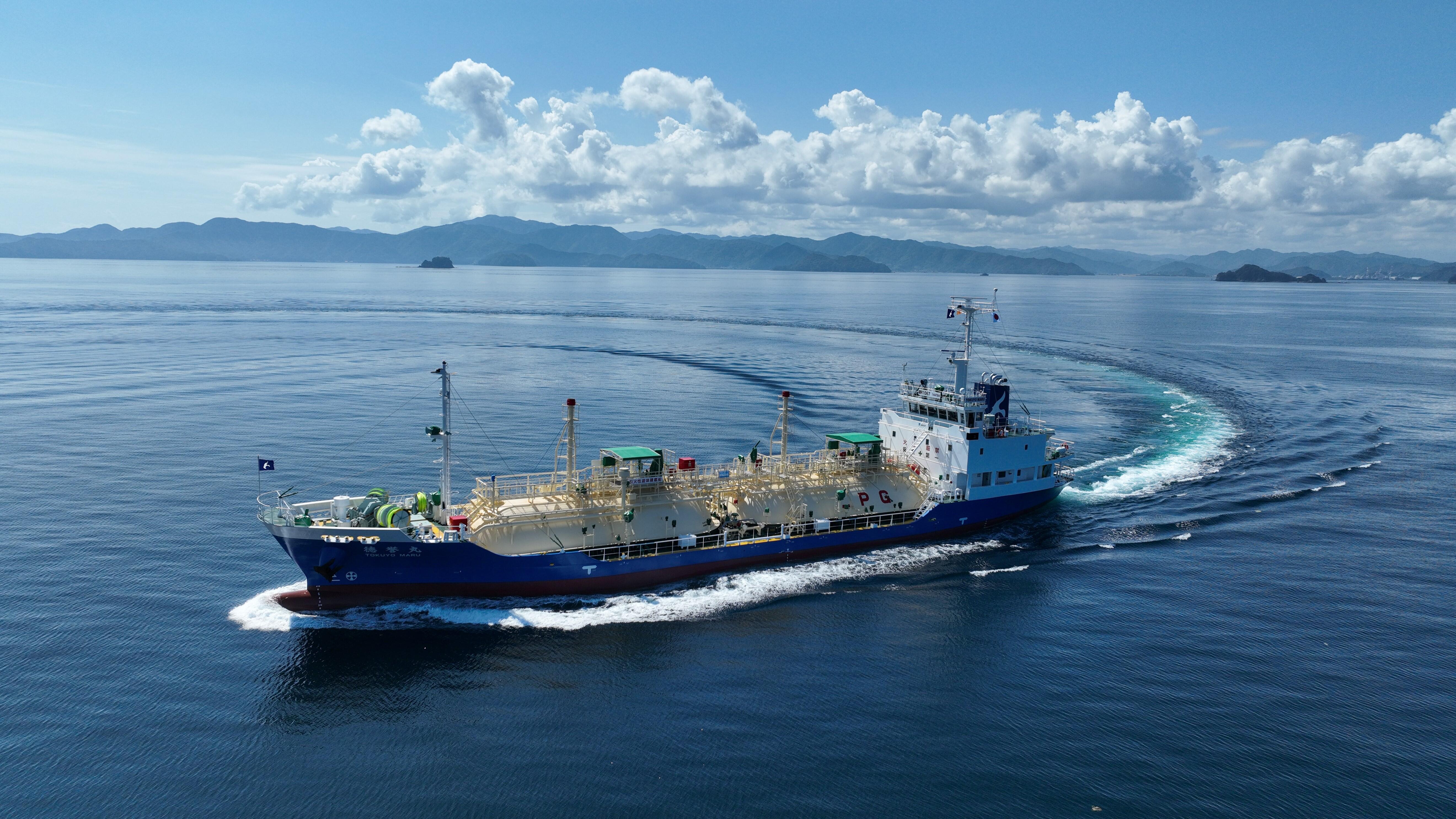 令和6年12月12日、大分県佐伯市の株式会社三浦造船所において竣工した大阪タンカー株式会社との共有貨物船